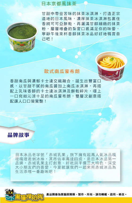 一年四季,都無法阻止我吃冰的慾望 ![]() ![]() ![]() ![]() 商品說明 ◆商品名稱:【DOLCE TIME】甜點冰淇淋 ◆商品效期:-18度以下,冷凍保存6個月 ◆內容物成份:CLASSIC CHOCOLAT-蔗糖、巧克力醬、玉米糖漿、乳製品、巧克力片、可可亞餅乾、可可粉、葡萄糖果糖糖漿、玉米粉、可可膏、乳清粉、食鹽、碳酸氫鈉、碳酸氫銨、大豆卵磷脂、香料)、可可膏、植物、可可粉、乳化劑、關華豆膠、刺槐豆膠、檸檬果膠、萊姆果膠、香料、可可色素、食鹽、洋酒(一部分原料含有小麥、大豆)。 ◆每份營養成份:依包裝所示。 ◆內容量:巧克力:97g,餅乾抹茶:100g,南瓜蒙布朗:95g ◆食品添加物名稱:CLASSIC CHOCOLAT-蔗糖、巧克力醬、玉米糖漿、乳製品、巧克力片、可可亞餅乾、可可粉、葡萄糖果糖糖漿、玉米粉、可可膏、乳清粉、食鹽、碳酸氫鈉、碳酸氫銨、大豆卵磷脂、香料)、可可膏、植物、可可粉、乳化劑、關華豆膠、刺槐豆膠、檸檬果膠、萊姆果膠、香料、可可色素、食鹽、洋酒(一部分原料含有小麥、大豆)。 ◆每份營養成份:依包裝所示 ◆有效期限: 巧克力:2017/01/20 抹茶:2017/02/16 南瓜:2016/11/16 投保產品責任險字號:富邦產險0500-03PD000463 ※爲保持產品最佳風味,開封後請盡速食用完畢。 |